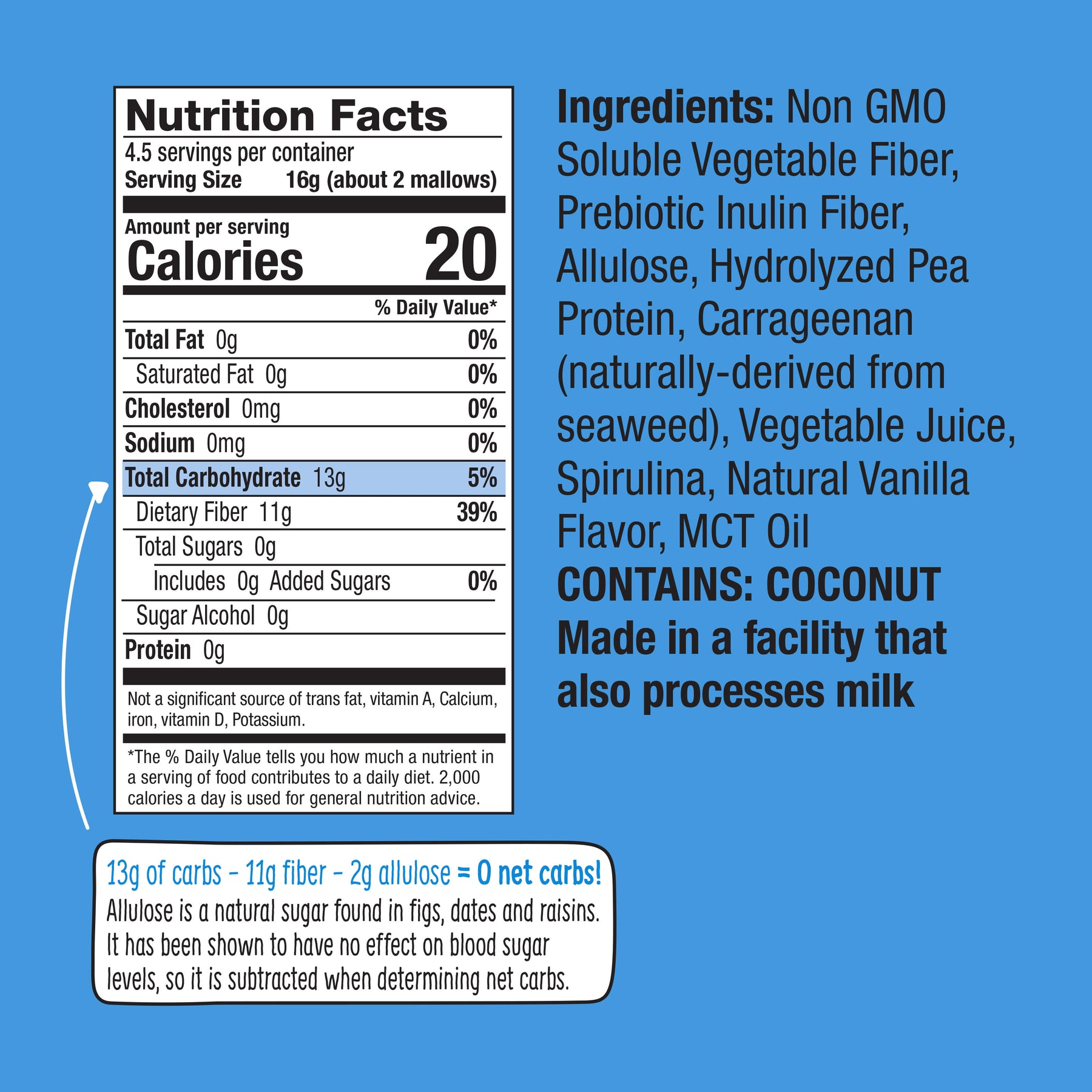 net carbs =total carbs - sugar alcohol/allulose - fiber = 0g.